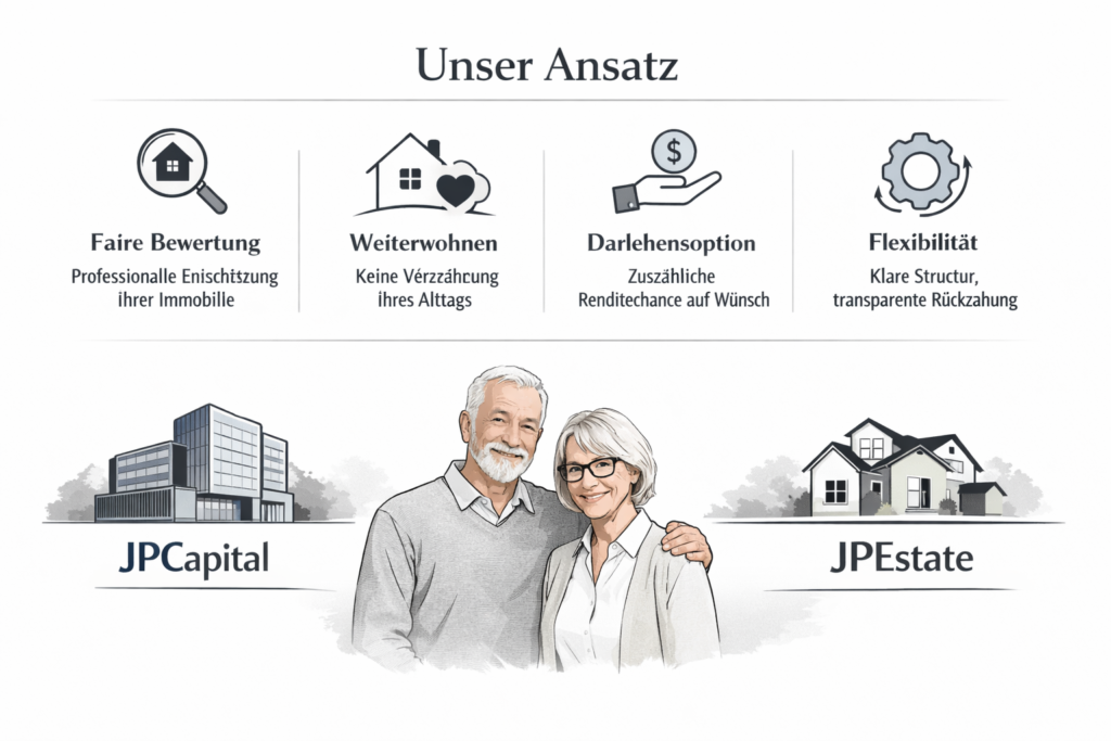 Sie verkaufen Ihre Immobilie an JPCapital und erhalten sofort finanzielle Sicherheit. Gleichzeitig können Sie weiterhin in Ihrem Zuhause wohnen, ohne Ihren Alltag zu verändern. So genießen Sie die Vorteile eines Verkaufs, ohne auf Ihren gewohnten Lebensraum verzichten zu müssen.